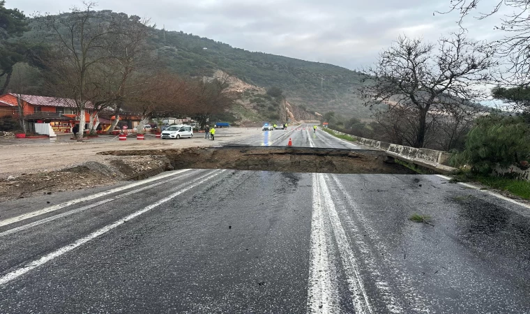 Aydın ile Selçuk arasındaki karayolunda etkili olan yoğun yağış, Ortaklar yakınlarında ciddi bir yol çökmesine yol açtı. Güvenlik önlemleri kapsamında yol tamamen trafiğe kapatılırken sürücüler alternatif güzergahlara yönlendiriliyor.